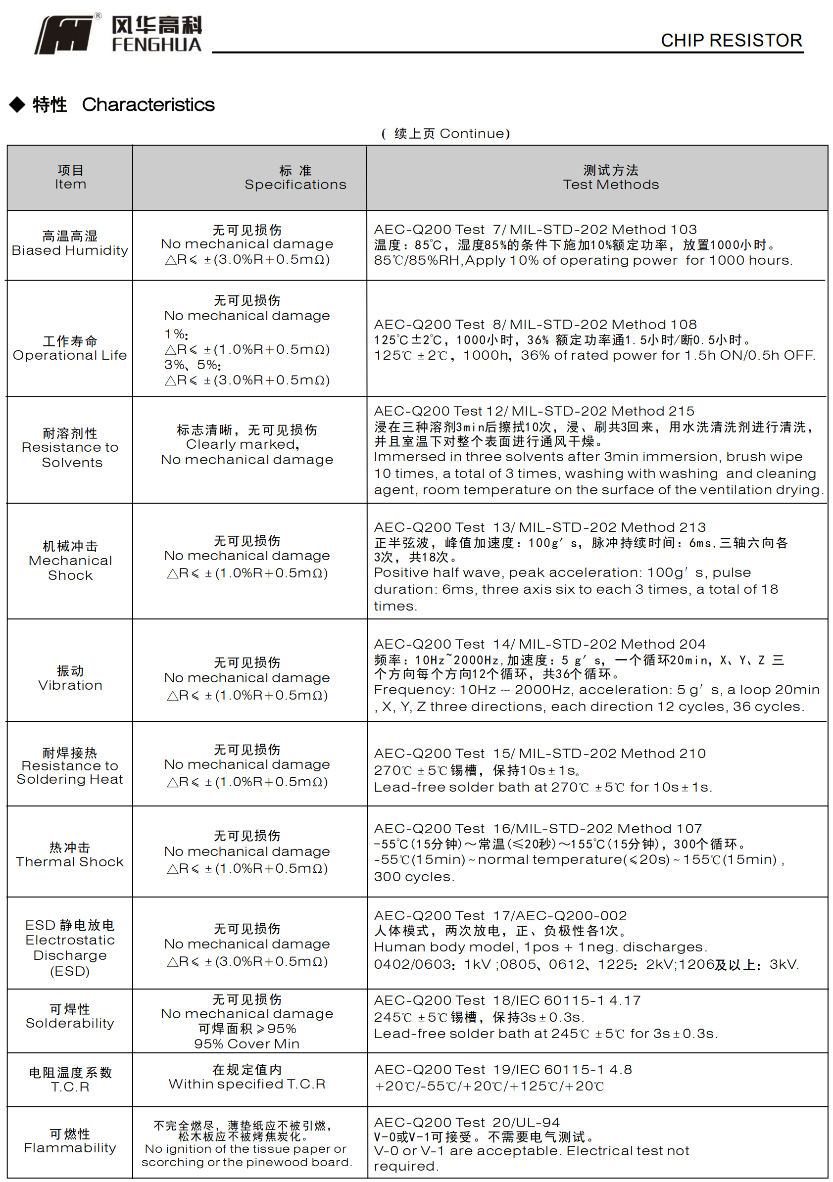符合AEC-Q200汽车标准相关条款