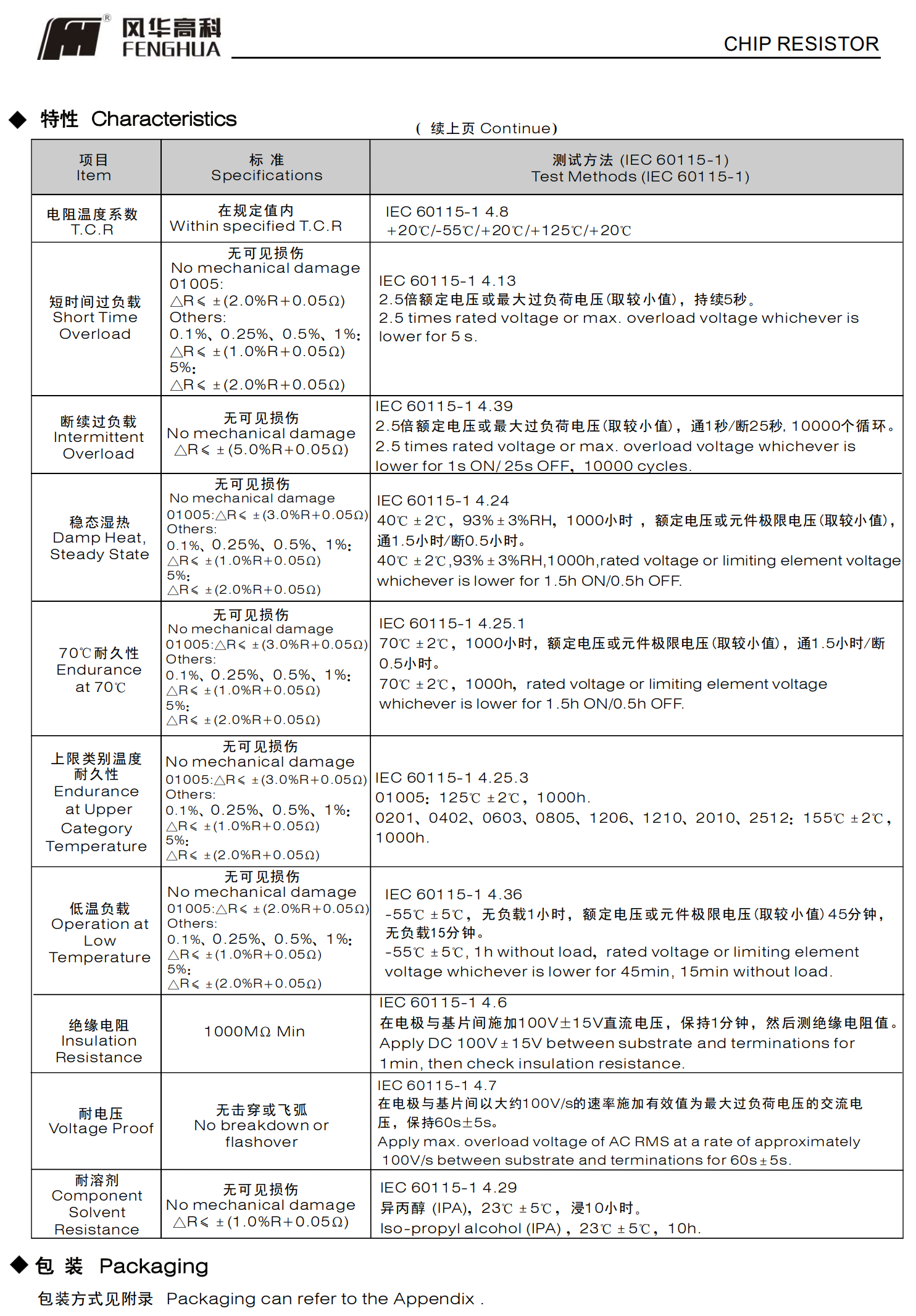常规厚膜片式固定电阻器